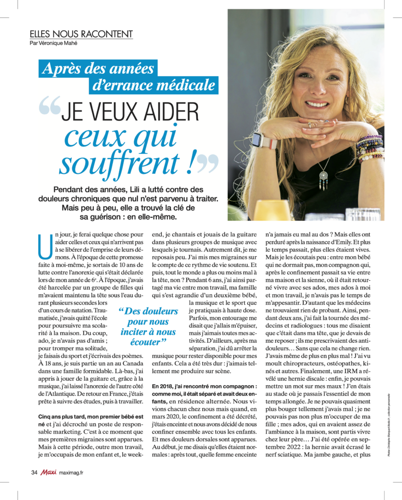 Un parcours que je raconte dans mon premier livre, J’ai mal mais je me soigne, où je partage les réalités souvent invisibles de la douleur et les chemins possibles vers la reconstruction.